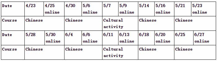线下各班授课时间均为每周三晚18:00-20:00;期间安排两次文化体验活动。