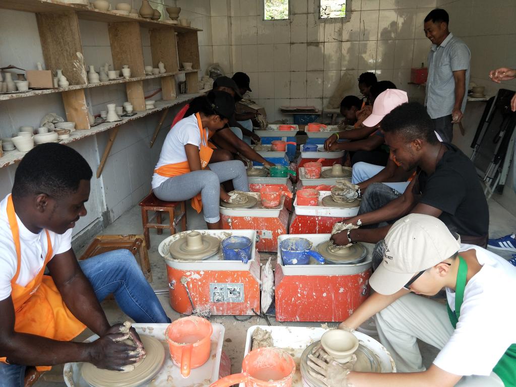 国际学生体验了瓯瓷拉坯制胎技术和手工捏陶。在浙疆青瓷-瓯窑小镇体验厅,国际学生们经过制陶师傅的耐心指导,迅速地掌握了相关的制陶技巧。经过2个多小时候紧张又刺激的制陶体验,眼镜蛇、非洲象、蜘蛛、非洲碗等带有异域风情特色的生坯作品生动地呈现出来,学生们看到自己及同伴的作品虽显粗糙,但是创意十足,尤其听说自己的作品将经过烧制后送到自己手中,他们异常兴奋。来自坦桑尼亚的Janeth说,今天的文化体验活动让自己对瓯文化有了进一步的了解,特别是手工拉坯体验环节激发了自己对瓯陶的兴趣,感谢成人影视