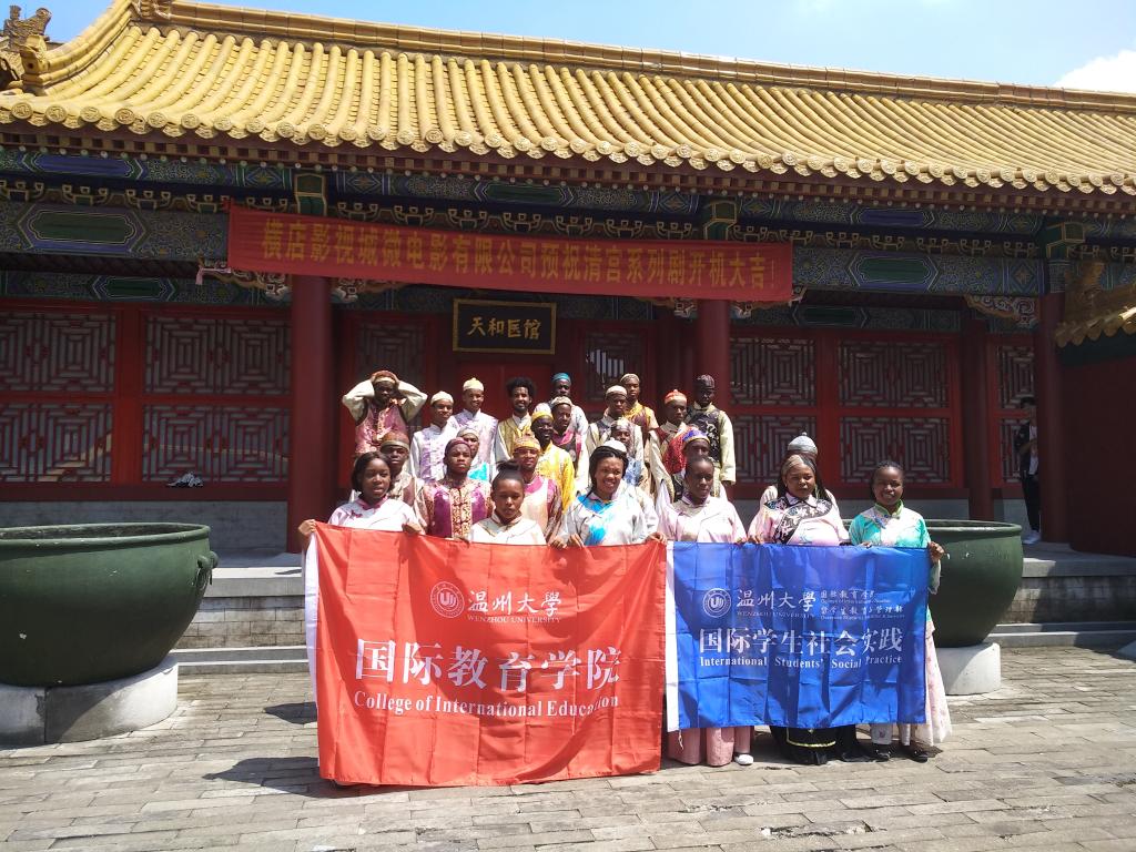 (留管部)组织了国际学生暑期“感知中国”系列活动之横店影视文化体验。来自12个专业、14个国家的40余名国际学生及学生科老师参加了此次活动。