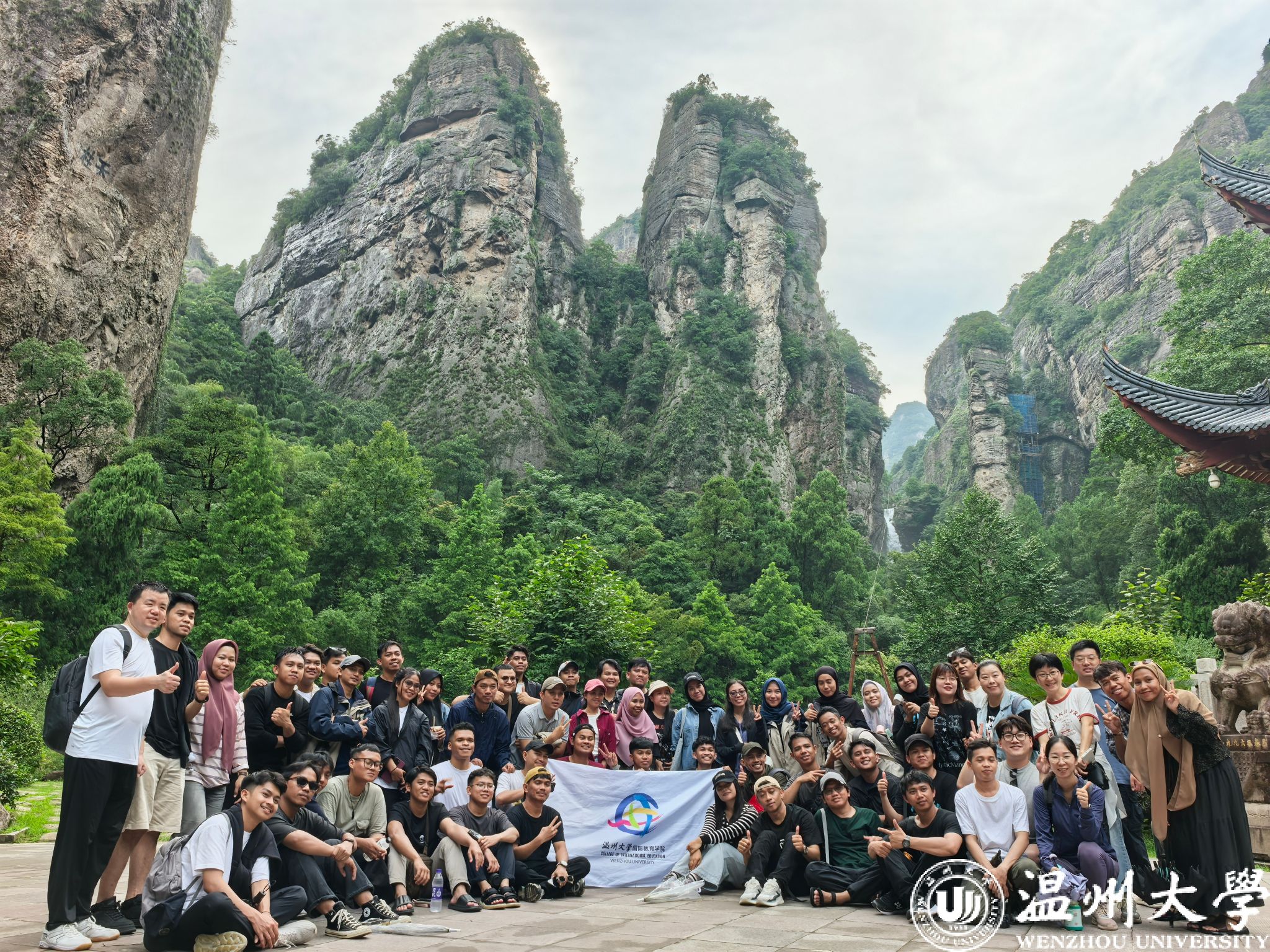 2025年7月13日,我院温大青山班学员前往世界地质公园、国家5A级景区——雁荡山开展文化研学活动。此次游览让来自热带群岛的印尼学子们深刻领略了中国东南山水的灵秀之美,也加深了对中华文化的理解。