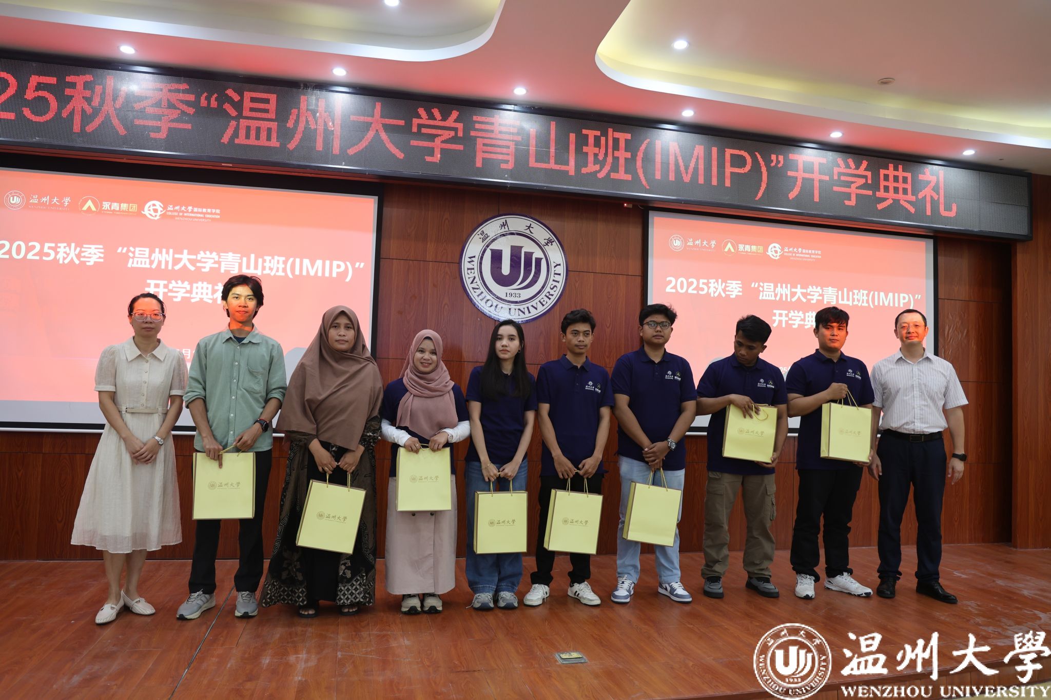 金秋送爽,丹桂飘香。2025年9月17日下午,2025秋季“温州大学青山班(IMIP)”开学典礼在温州大学北校区3-203报告厅举行。温州大学副校长王舜,青山实业永青集团保障管理中心综合管理部副经理朱振涛、人事专员张欣,温州大学国际交流与合作处副处长熊勇,成人影视