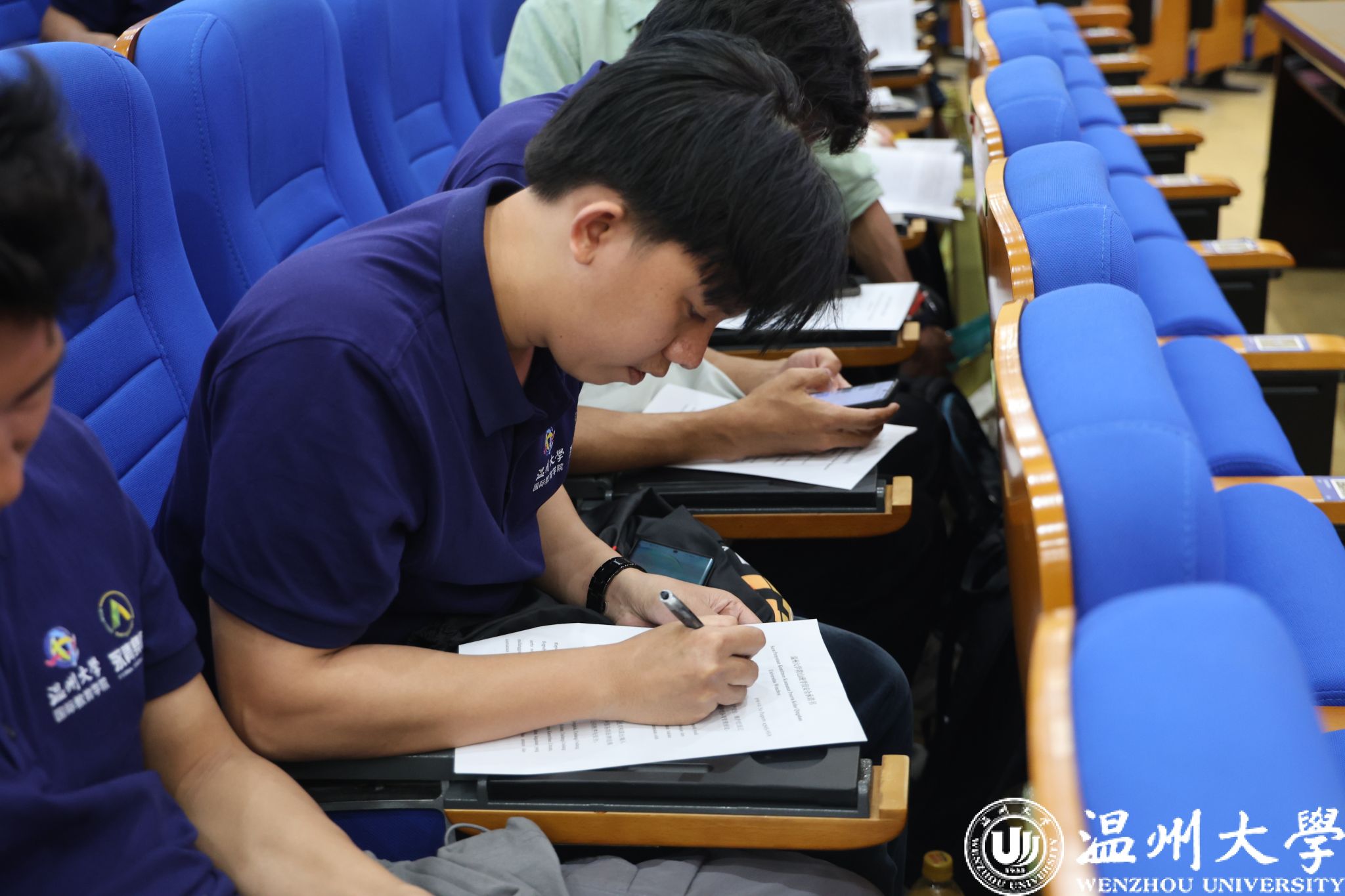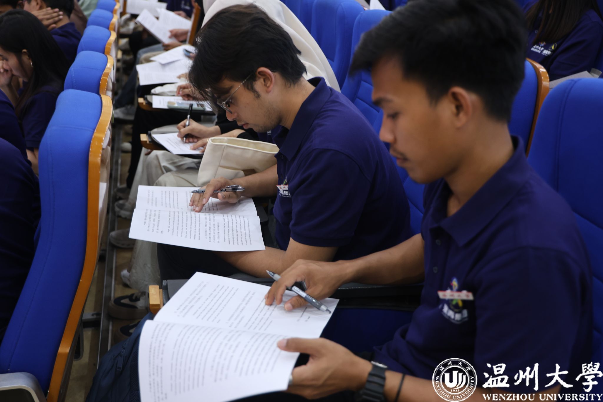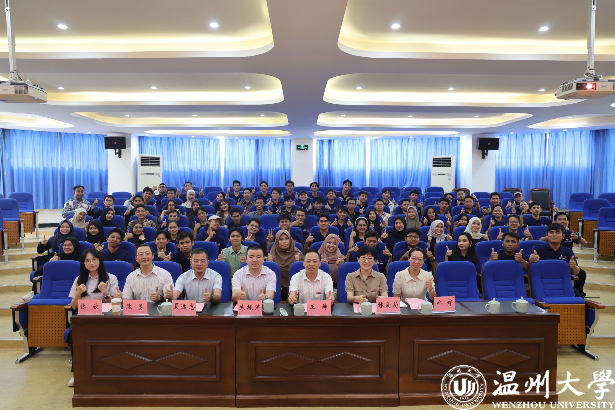 院长夏远志、党总支书记林爱菊为学员代表佩戴温州大学校徽,并用中文亲切问候,寄语“青山与温大紧密相连,携手共进”。随后,国际交流与合作处副处长熊勇、成人影视
