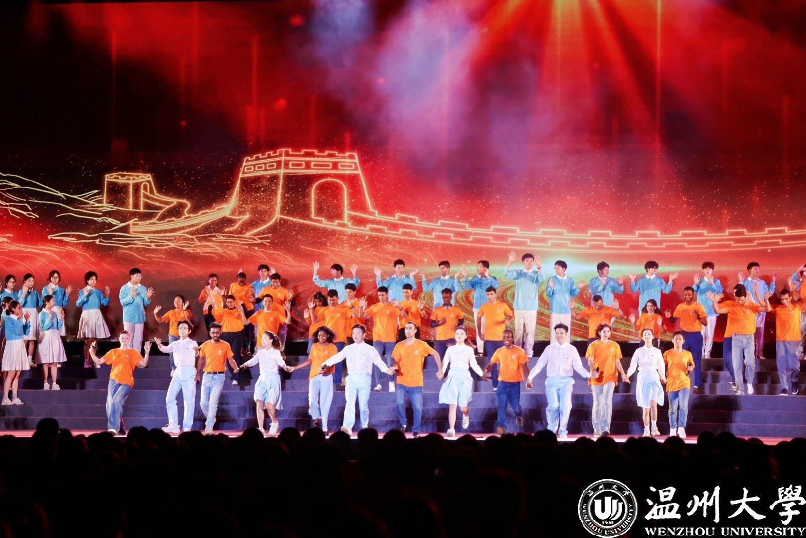 2025级国际新生统一着装、率先入场,展现出优秀的国际风采,获得了相关部门领导的高度赞誉。特别值得一提的是,从上周末敲定出演到正式演出,留学生们仅用不到一周时间就成功完成了两场节目的排练任务。本次开学典礼暨艺术思政大课的成功演出,充分体现了学院教师们优良的育人成效,承载了学工队伍的辛勤付出,展示了国际师生良好的精神风貌。在全体师生的共同努力下,温大“国际味”更浓了,“国际气派”更靓了。