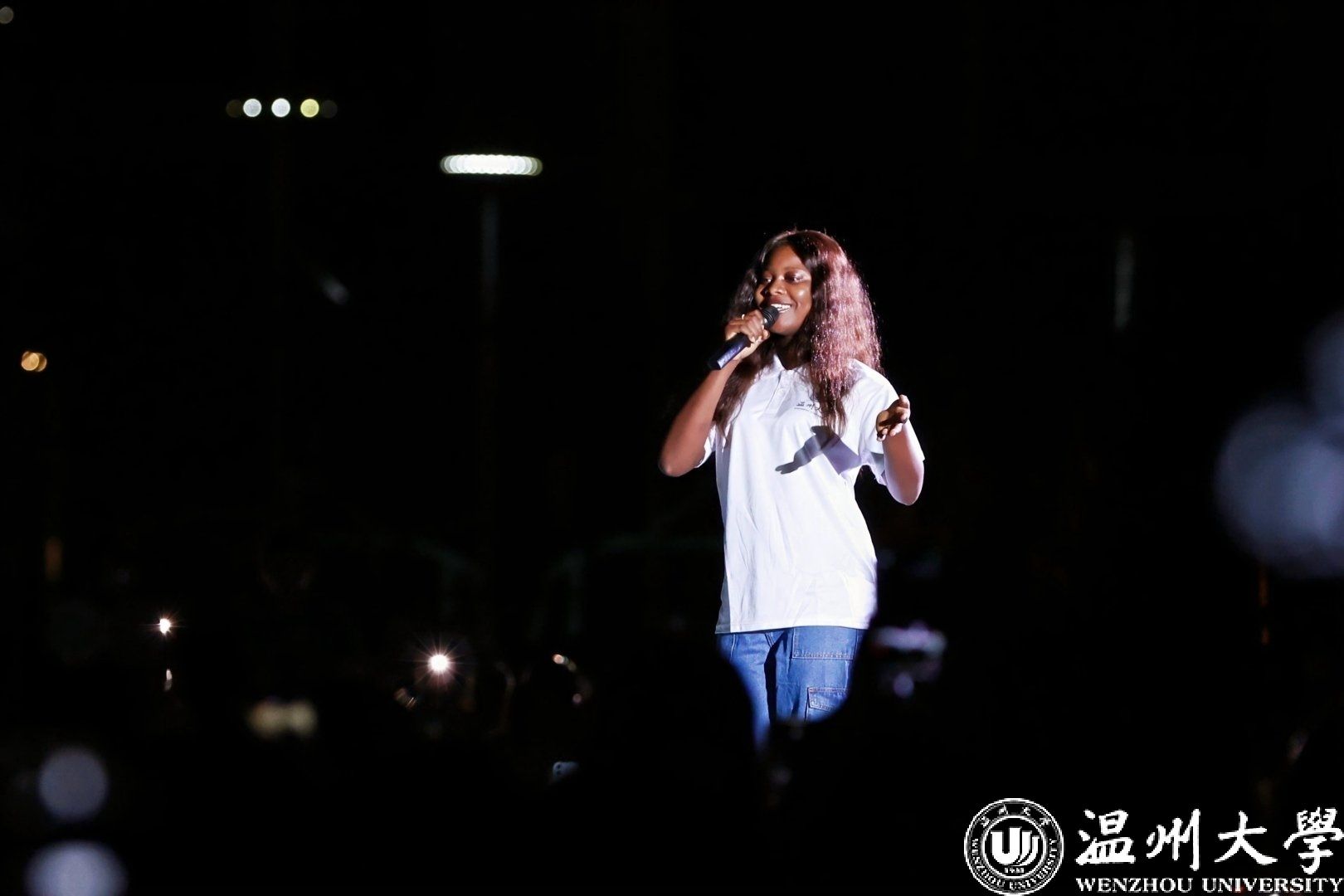 40余名学生积极参与多个节目演出,用艺术语言传递跨文化理解与青春理想。在开场音乐表演环节,来自尼日利亚的国际学生CHIMEZIE GIFT CHIDERA(礼物)以一曲英文歌曲《Dream It Possible》精彩亮相。她充满感染力的演唱,生动诠释了青年一代对梦想的执着追求,展现了国际学生自信昂扬的风采,赢得了现场师生的热烈掌声。此外,由国际学生带来的节目——四海同声《读中国》,将整场氛围推向高潮。来自赞比亚、孟加拉国、土库曼斯坦、印度尼西亚、津巴布韦等国的国际学生,以流畅的中文和真挚的情感朗诵经典篇目,表达对中华文化的理解与热爱。他们用真诚的声音搭建起文化交流的桥梁,展现温大国际化校园的包容与活力。
