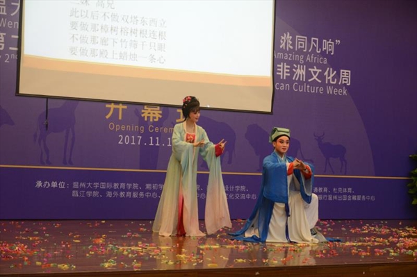 编写团队一一亮相介绍之后,新书中出现的南拳和瓯剧也在现场进行了立体呈现。南拳团队木权通大师带领着12位留学生给大家展示了现代温州南拳,留学生们有板有眼地表演起了木氏拳法,在场的观众目不接暇。随后温州瓯剧团年轻的表演艺术家吴鑫和王文丽,演绎了瓯剧中广为流传的剧目《高机与吴三春》中的经典片段《江心盟誓》。表演结束后,现场的学生争相上台与演员合照,现场气氛热烈。发布会在愉快的气氛中圆满结束。