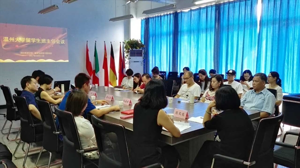 陈军、陈文远分别解读了留学生教育与管理部新订的温州大学国际学生教学和管理服务相关文件。优秀班主任孙珉璐博士分享了她担任留学生班主任的经验。