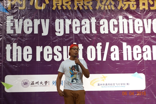 2016年4月6日星期三下午,外国语学院协同温州市通用航空飞行学院(筹)在温州大学大学生活动中心育英大礼堂专为修读《大学外语》课程的大一、大二学生举行了英语学习分享会,旨在推进大学外语教学国际化、加强学生的国际化学习意识、提升学生的自我认知能力。分享会得到了校团委、外事处、保卫处和机电学院等单位的大力支持与配合,外国语学院毛继光院长、陈孟森书记、朱晓申副院长、外教George Main和全体大学英语教师以及15级研究生参加了分享会。外事处叶苗处长,国际合作学院包含丽副院长、英语教练刘书云老师以及外教Ely等也出席了分享会。分享会由外国语学院金瑶同学主持。