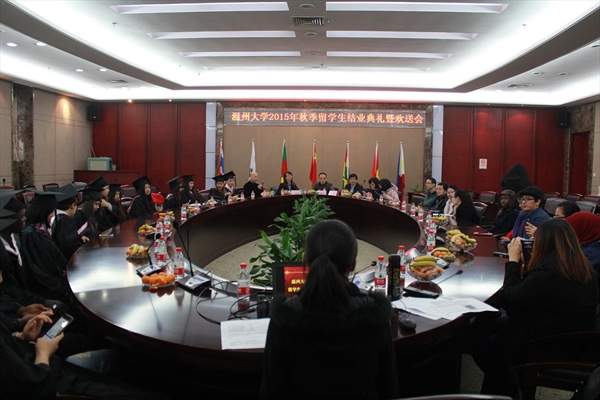 教师代表金碧老师回顾了留学生们这一年以来所取得的点点滴滴的进步,鼓励他们带着母校美好的祝愿,继续坚持学习汉语,在汉语学习的过程中感受更多汉语语言的魅力和中国文化的底蕴。即将学成归国的泰国东方大学留学生PHETNOK CHALISA (彭丽莎)代表全体结业学生用朴实的话语表达了对温州大学真挚的情感:“虽然温州的天气很冷,但是学校的老师和同学让我感受到了家的温暖,这里是我的第二故乡,这段求学时光是我的宝贵经历,感谢温州大学!”