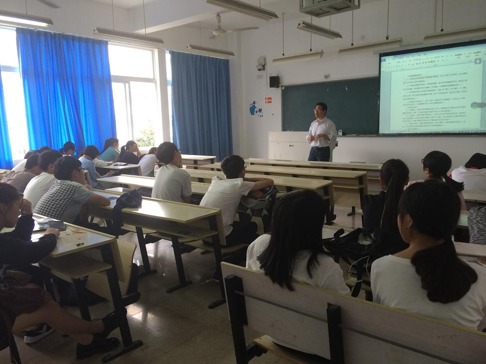 10月9日中午13点30分,国际合作学院王洪斌博士在北校区3号楼307教室为国际经济与贸易(国际化)专业全体新生开展专业导读课,我院2015级国际经济与贸易(国际化)专业的40位新生共同聆听了王博士的专题解读。