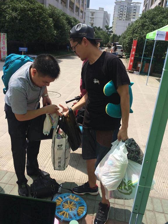 根据学校的统一部署,配合学区的工作安排,我院迎新工作有序开展。今年我院的新生全部安排在超豪学区E区,上午7点开始,迎新点就陆续挤满了来报到的新生同学,核对录取通知书、报到注册、分发资料、领取钥匙饭卡、疑难解答、行李搬运、送新生到宿舍,现场接待热情有礼,手续办理有条不紊,细致周到的服务工作,获得了新生和家长的一致赞许。