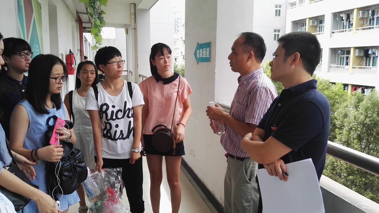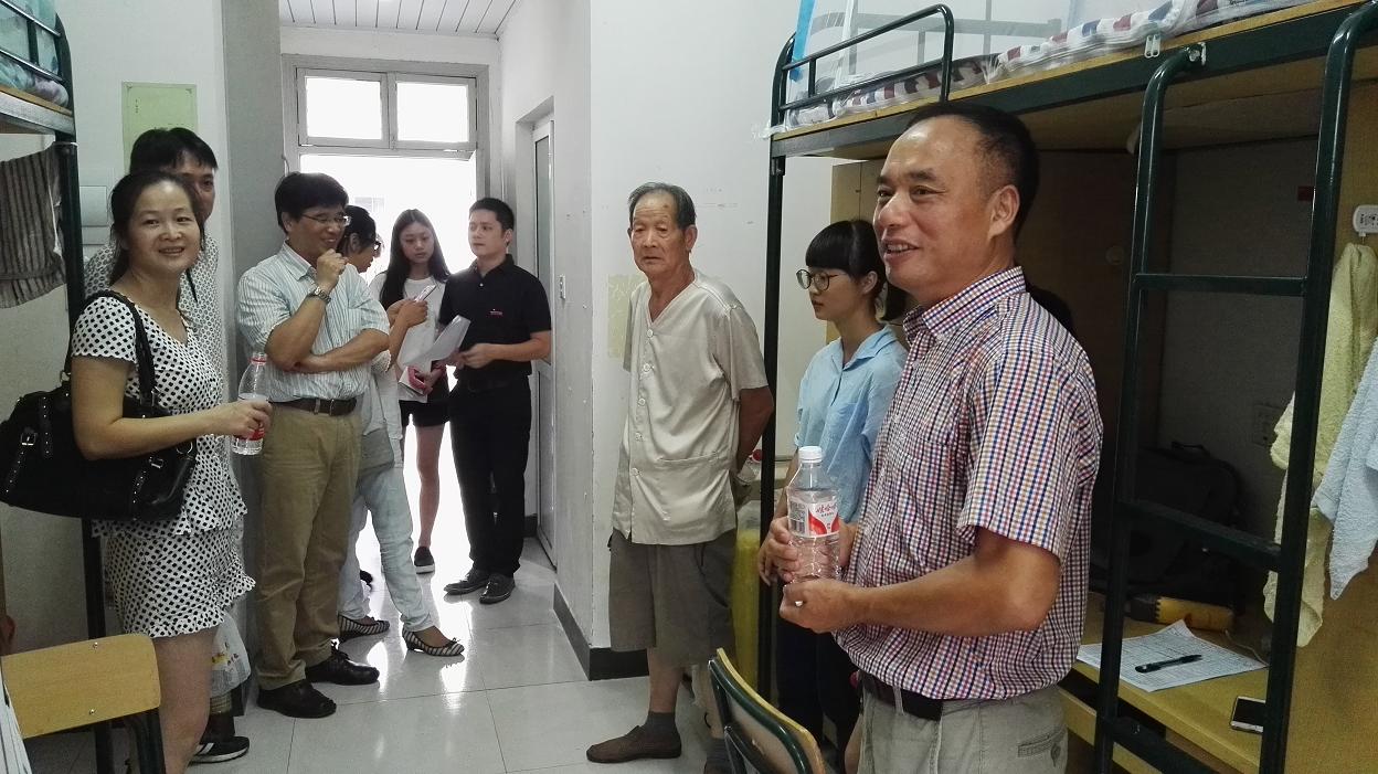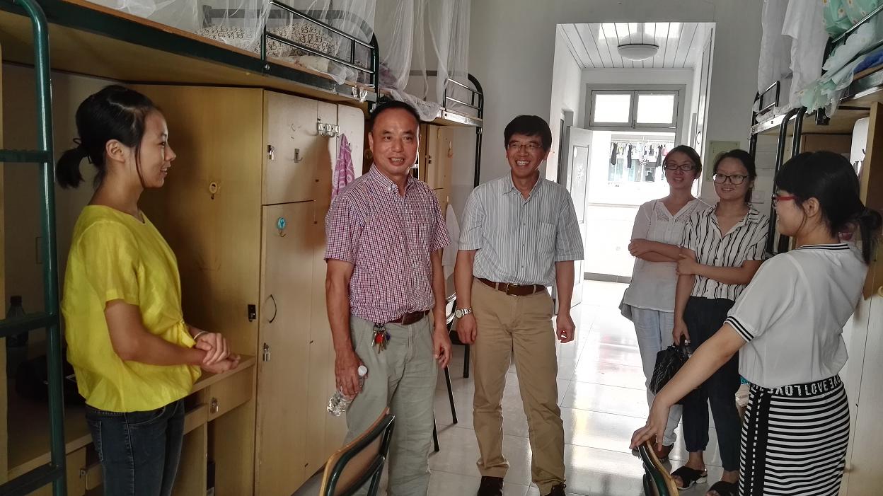 9月8日下午两点,温州大学国际合作学院党总支书记朱建平、副院长陈军带领新生班主任和辅导员一起走访我院2015级23个新生寝室,看望慰问新生及家长。