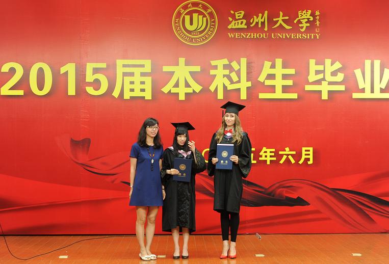 近日,11级中丹班的学生更是体验了中西两场隆重的毕业典礼,在典礼上温州大学校长蔡袁强教授和丹麦尼尔斯布鲁克哥本哈根商学院副校长Claus Villumsen先生分别为11级中丹班的学生颁发了温州大学本科毕业证书、管理学学士学位证书和丹麦尼尔斯布鲁克哥本哈根商学院国际营销管理专业学士学位证书。典礼上,国际合作学院院长严晓鹏寄语2015届毕业生要保持对自己未来的好奇心和耐心;保持终身学习的习惯;始终以全球化的视野认识世界;更要保持一颗善良的心。