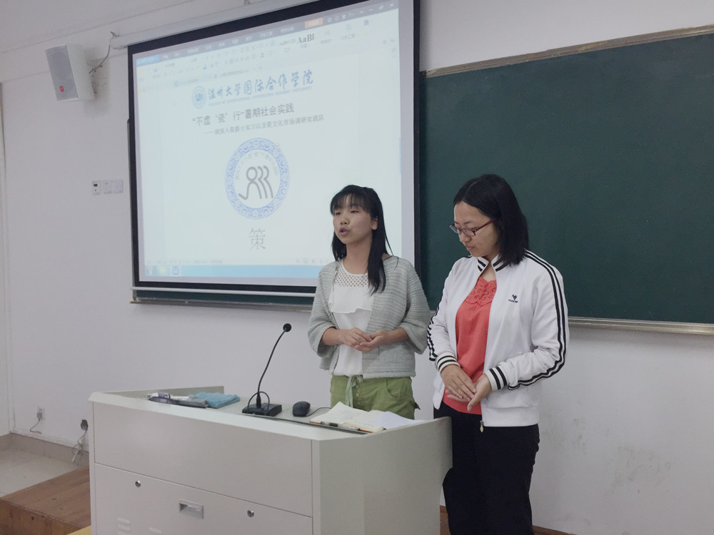 为保障2015年暑期社会实践工作的顺利开展,国际合作学院于近日举行暑期社会实践方案策划比赛。经过书面初审,全院有6支实践队伍进入到最终的现场展示评比环节,学院辅导员老师及学生会主席团成员担任评委。