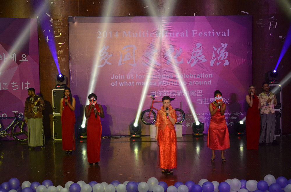 泰国留学生给大家展示了原汁原味的泰国文化,她们自己制作的服装更是惊艳全场;韩国留学生戴面具表演的传统舞蹈掀起了新的“韩潮”;荷兰学生和墨西哥学生联袂演出的《Hero》,更是让现场观众陶醉其中;非洲留学生的乐队表演,特别是深情演绎的中文歌曲,引发现场观众的共鸣,赢得阵阵掌声。中国学生表演的舞台剧《白雪公主》让人捧腹大笑;而《说唱脸谱》更是中西合璧,中外学生合作默契,全场观众赞不绝口;乌兹别克斯坦留学生们与观众的互动摔跤则让晚会气氛达到高潮。