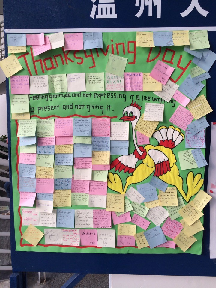 感恩节是西方最传统的节日之一,在每年十一月的第四个星期四举行。我院团委学生会借此机会发起活动,意在使远离父母亲朋的同学们,尤其是身在异国他乡的外国留学生们,得以寄托亲情友情,学会表达,懂得感恩,从而促进学院学生工作和谐有序的发展。