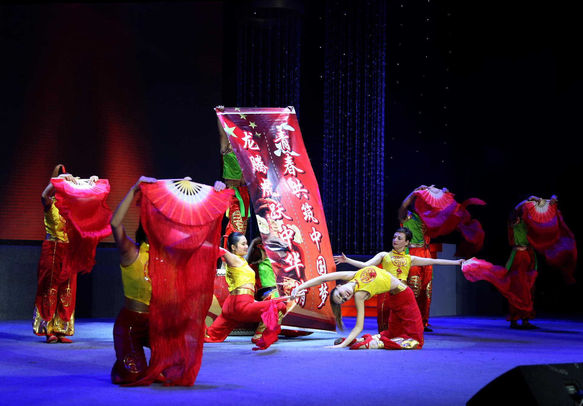 图为成人影视留学生表演舞蹈《龙腾虎跃》