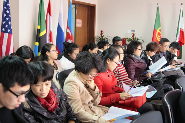 随后是薛伟副校长致贺辞。在贺词中,薛校长充分肯定了学院三年来取得的显著成绩:基本完成了由非学历教育(库克项目)向学历教育为(中丹、两岸项目)的转变;留学生教育、华文教育规模不断扩大,层次不断提高。并对学院今后的发展提出了几点希望和建议:一是要找准目标定位——建设一个特色鲜明的国际化教学型学院;二是要加强师资队伍建设——建立一支专兼职相结合的高水平的中外师资队伍;三是要稳中求增长——逐步扩大办学规模,提高办学层次;四是要引进国外先进的办学理念和教育教学模式——办好中丹、两岸合作办学项目;五是要开拓创新艰苦创业——开辟国际合作新途径努力探索实践教育教学新模式。