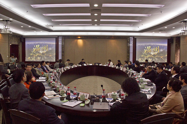 11月13日上午,省、市政协港澳海外委员和省、市政协港澳台侨与外事委特邀委员、特邀嘉宾,市政协、市政协港澳台侨与外事委、市侨办、市教育局相关领导一行莅临国侨办华文教育基地——温州大学调研,并于成人影视会展中心白鹿厅隆重举行温州市政协海外华文教育工作专题座谈会。座谈会由市政协港澳台侨与外事委主任潘一新主持。