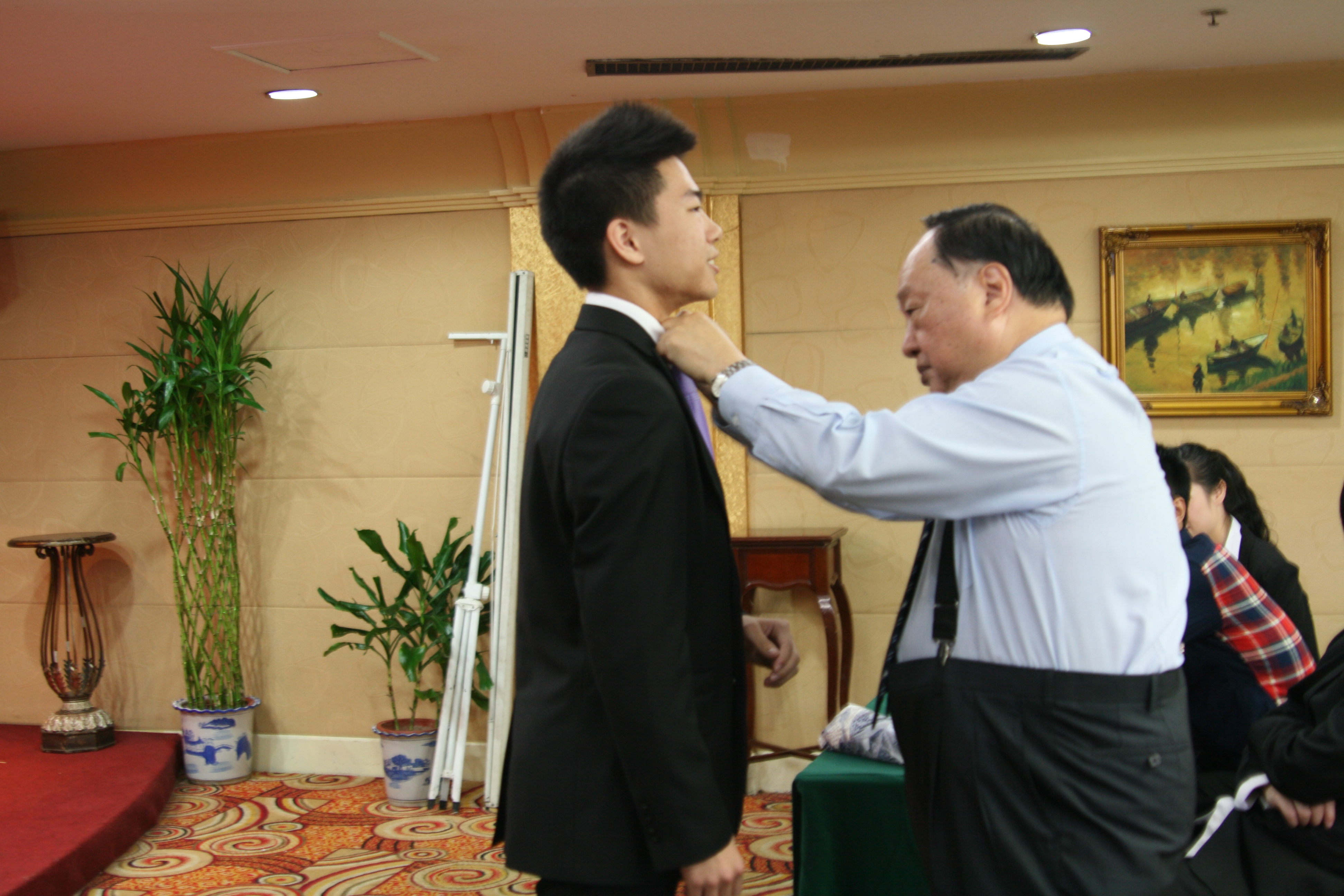 黄校长示范如何正确着装