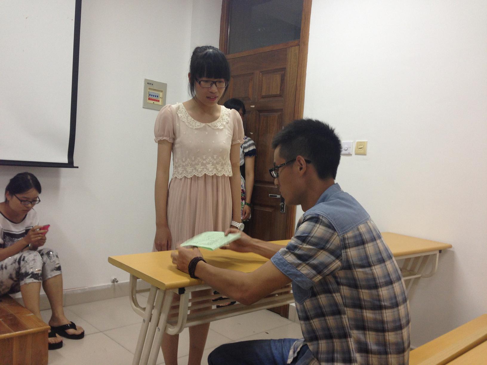 招新面试工作共分为三轮,第一轮是自我介绍,同学们走上讲台简明清晰地介绍自己的学习生活经历和自身优缺点。第二轮是能力素质考核,侧重对同学们沟通、协调能力的考核,参与面试的同学被随机分组,在现场抽签得到题目,在规定的十几分钟内完成一场短剧编排,随后进行成果展示。评委们表示,设置这样的考核方式,主要是希望同学们在较为活跃的氛围下展示自己,结交朋友,并借此考验同学们的应急能力和合作能力。最后进行的第三轮是岗位适应性考核,各部门各出奇招来考察应试者能否胜任本部门工作。如宣传部让应试者撰写微博并配上插图;文娱部更是别出心裁,以搜集新生才艺的方式来考察准干事们;组织部则要求进入复试的新生现场完成活动策划书。在面试过程中,针对台下评委的提问,同学们反应敏捷,层次明了,偶有紧张也能及时调整,不时赢得评委们的称赞。经过三轮的选拔,此次我院学生会9个部门共招纳13级新生40名。