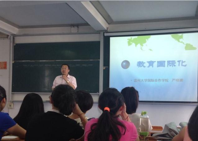 课堂上,严院长以教育国际化为主线,深入介绍了我院的办学理念,针对学生毕业后就业、考研或是出国深造等问题提出了针对性和启发性的建议。“英语是世界上通用的语言,所以学好英语非常重要,一个人成绩优异,与智商无关,关键是他的学习态度,态度决定一切。”严院长强调,学好英语、打好基础是国际合作学院学生最重要的目标之一,他还提出,高等教育国际化、大众化的背景下,同学们应该去尝试自己的另类人生,学会运用网络获取知识;要形成正确的思维方式,加强与人沟通,培养自己与环境、社会相处的能力,保持心灵健康,走向国际,开拓未来。