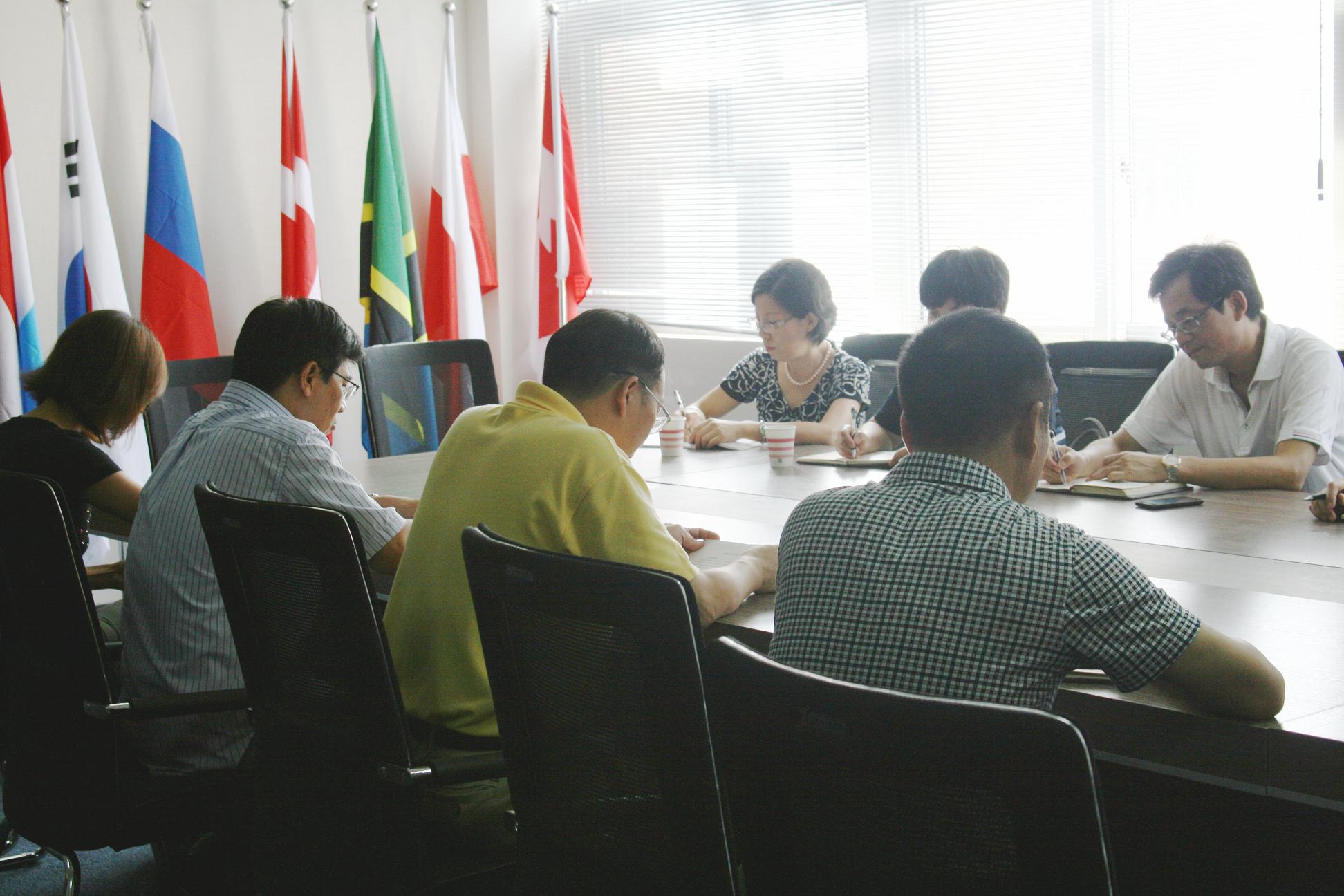 严晓鹏院长汇报了学院的发展历程,近年来取得的标志性成果,当前学院的运行状况:中丹合作办学项目、两岸合作办学项目以及留学生教育的教学模式以及财务状况等,分析了处于创业发展阶段中学院面临的机遇和挑战,特别提出了在当前学院的运行体制不确定的情况下,学院在人才引进、师资队伍建设、教学工作安排、教改科研等各方面存在一定的困难。朱建平书记也就我院各项实际工作中的一些特殊性进行了阐述,希望学校领导及有关部门能给予更多更大的政策支持和扶持力度。会上人事处、计财处、外事处负责人也就我院的运行体制,特别是财务机制提出了中肯的意见和建议。