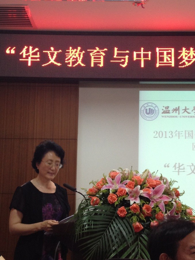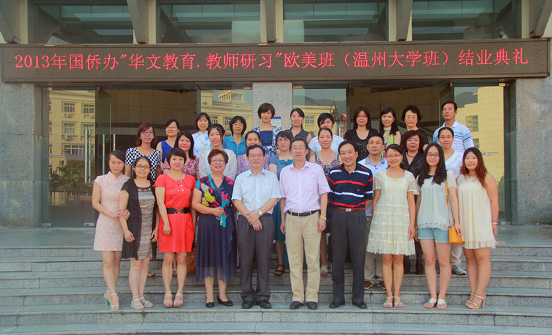 7月24日下午,温州大学在茶山南校区岩松堂展示厅隆重举行“华文教育与中国梦”论坛暨2013年“华文教育•教师研习”欧美班结业典礼。浙江省人民政府侨务办公室副主任徐高春,文宣处处长王云奇,温州市侨办副主任许捷,党组成员、文宣处处长叶斌斌,温州大学国际合作学院院长严晓鹏等领导出席了本次论坛暨结业典礼。