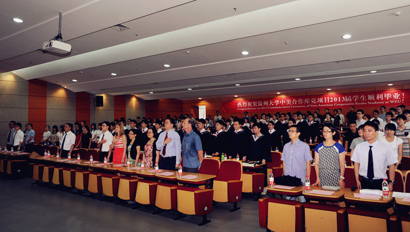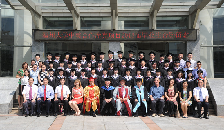 6月18日上午,温州大学中美合作库克项目2013届毕业典礼在温州大学茶山校区会展中心雁山厅隆重举行。我院2009级42位毕业生从温州大学副校长薛伟博士、库克大学董事长习克先生(Mr. Robert Schick)、库克大学校长贺睿拉博士(Dr. Jorge L. Diaz-Herrera)、库克大学中国总校区校长黄天中博士(Dr. Michael Hwang)手中接过了美国库克大学管理学学士学位证书,这是他们终生难忘的一天。