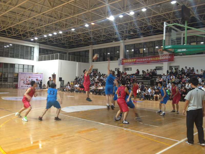 首场比赛,我院迎战的是瓯江学院。比赛期间,我院中外队员奋力拼搏,团结一致,为我们展现了一场精彩纷呈的体育赛事。他们优美的抛物线,漂亮的抢断,精彩的投篮,生动的盖帽,默契的配合,将篮球技巧发挥得淋漓尽致,双方队员情绪高涨,观众亦激情四射,啦啦队气势磅礴。虽然最后我院队伍在比赛中以几分之差惜败,但是运动员们永不言败,奋勇拼搏的精神已深入到每一个人的心中。此次篮球赛为我院学生提供了与留学生友好交流的机会,培养了团队合作意识,增强了学院中外学生的凝聚力。