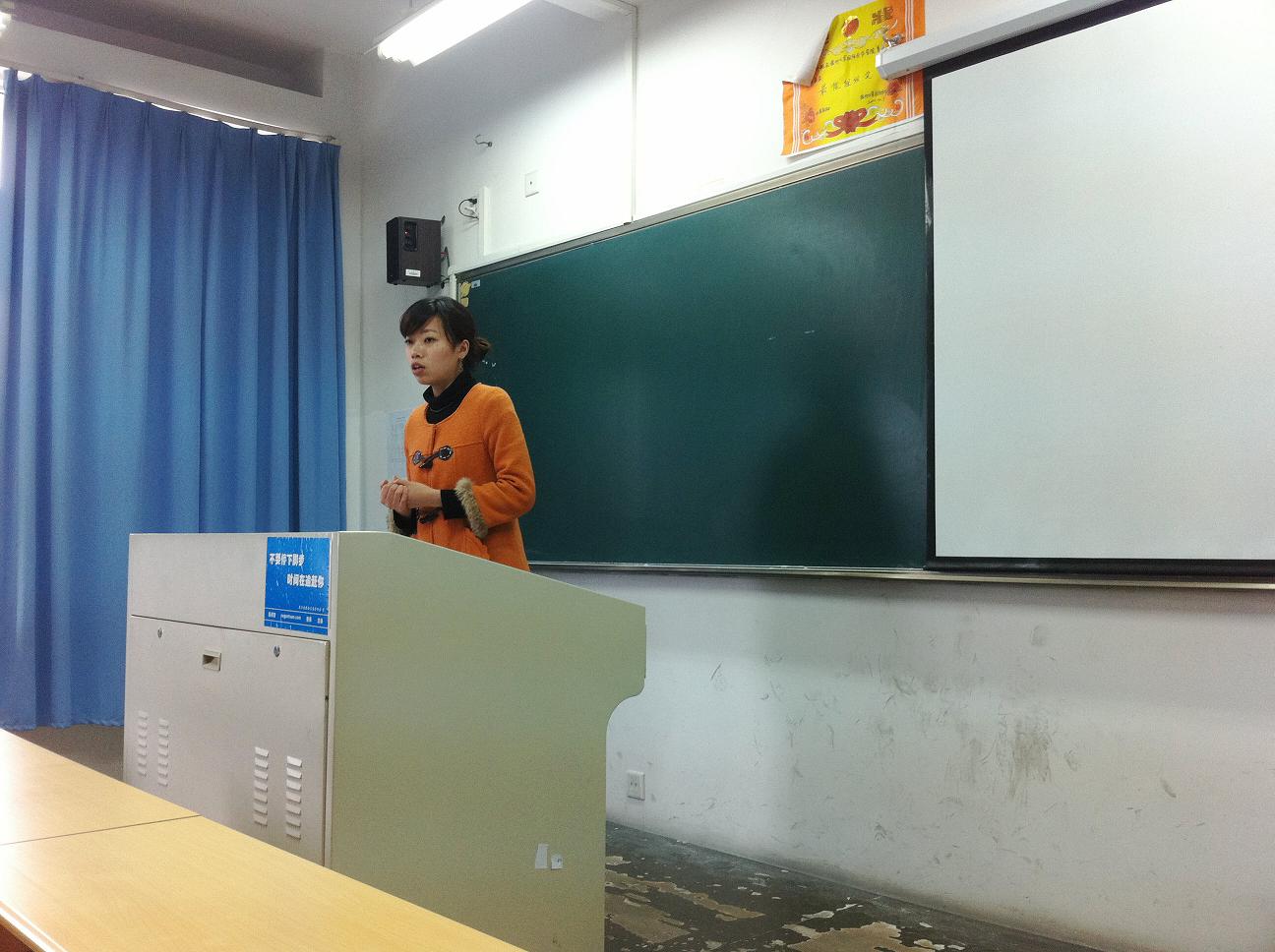 讲座上,严晓秋老师结合去年典型的大学生暑期社会实践活动优秀案例指导学生如何做好社会实践,鼓励大学生积极走出去,开展出更有意义更有影响力的暑期社会实践活动,在活动的策划、组织与宣传等各个方面提出了宝贵的指导性建议。张柳春同学具体介绍了社会实践相关制度、2012年暑期社会实践要求。另外就社会实践注意事项等与在会同学做了具体交流。