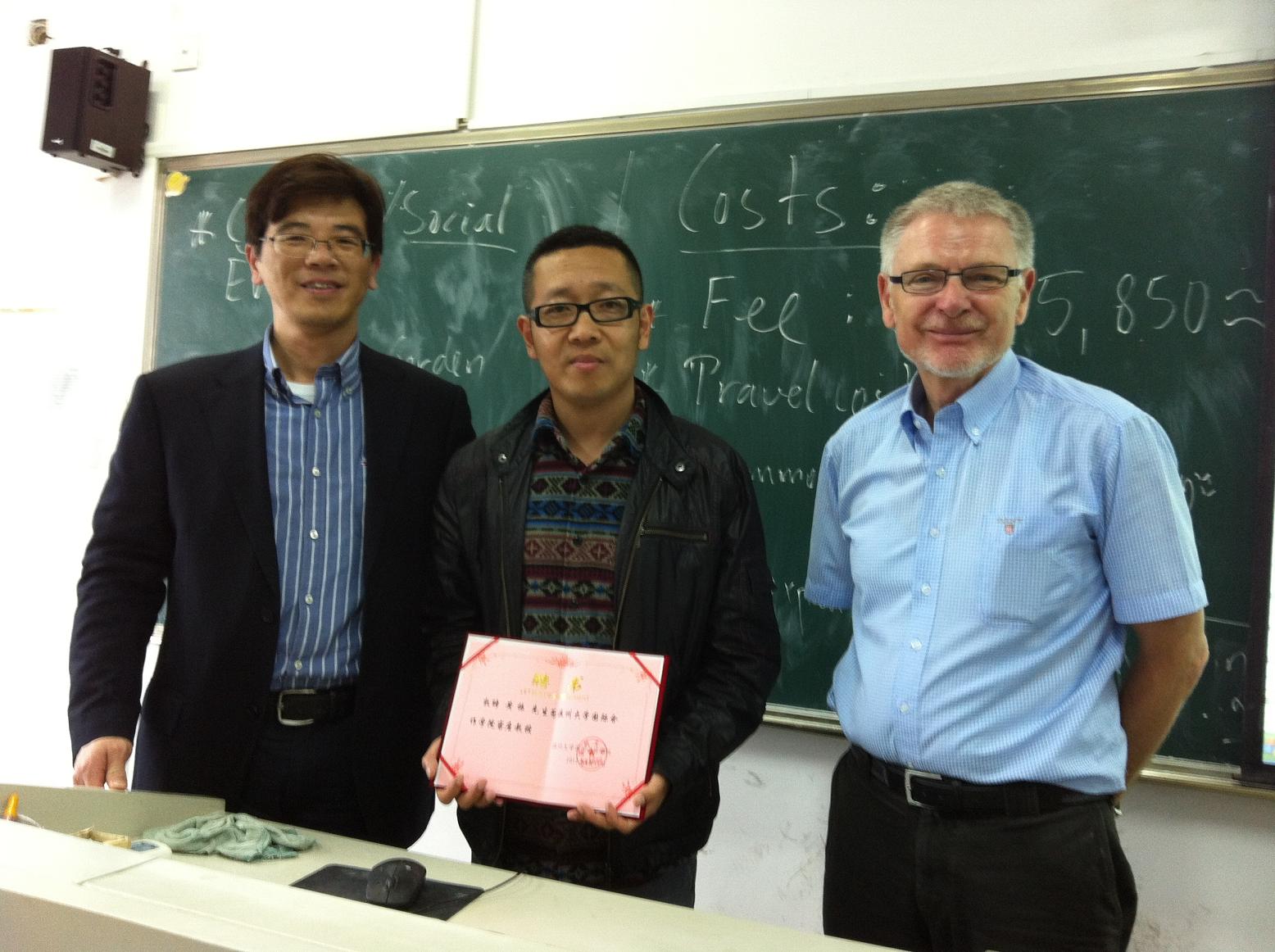 2012年4月11日下午3:30,我院在7D-407教室举行了聘任黄振先生为国际合作学院客座教授的仪式。院长严晓鹏、副院长陈军、中丹合作项目丹方项目经理Jorgen Dalhoff先生参加了聘任仪式。
