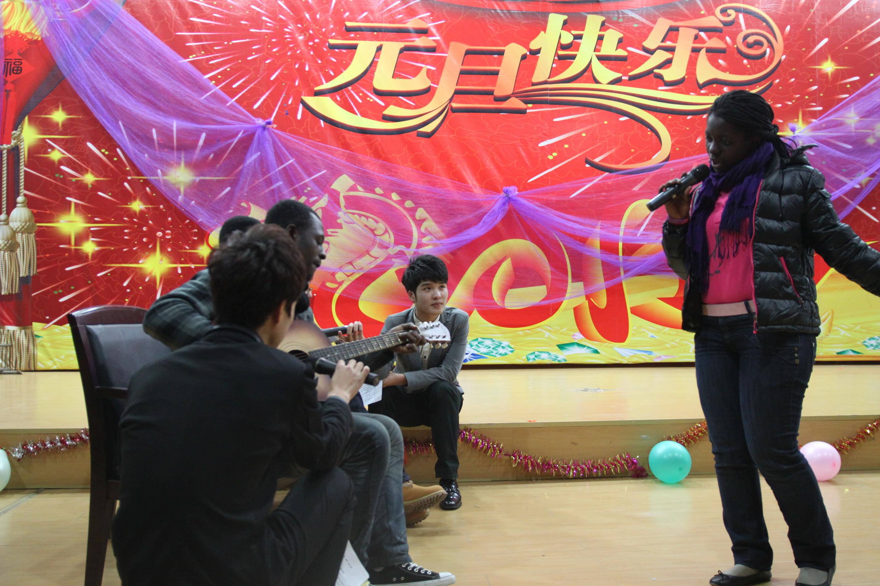 出席晚会的学院领导有学院党总支书记方建敏,学院副院长陈军。短剧《穿越》为晚会拉开了帷幕。舞蹈,唱歌,小品,晚会节目丰富多彩。教师的风采,学生的朝气,在现场得到完美的体现。女子跆拳道表演“以武取胜”;小品《爱笑》令人捧腹;张丽丽老师的葫芦丝演奏使我院同学着实感受到了艺术的魅力;外教Crumly的一首《This land is your land》以及加纳留学生自弹自唱的《Happy New Year》将气氛带向高潮。