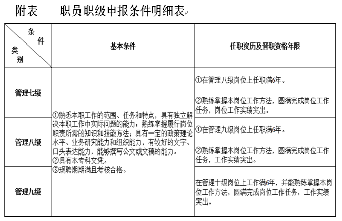 5.各级岗位竞聘基本条件、任职资历及晋职年限如下: